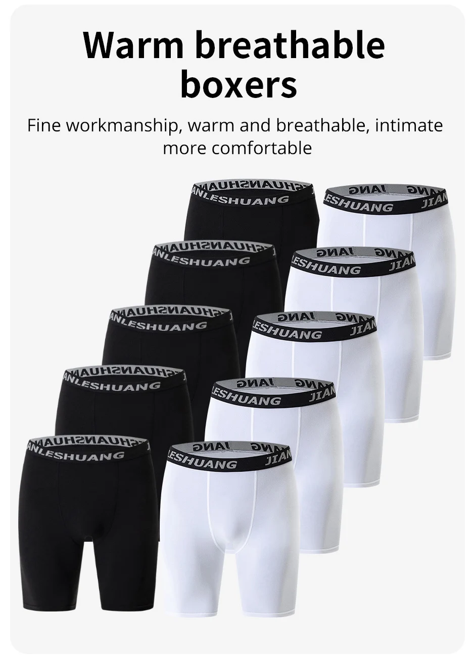 1/5 Pcs Men’s Plus Size Black And White Long Sports Underwear Running Fitness Basketball Football Elastic Waist Shorts Teenagers