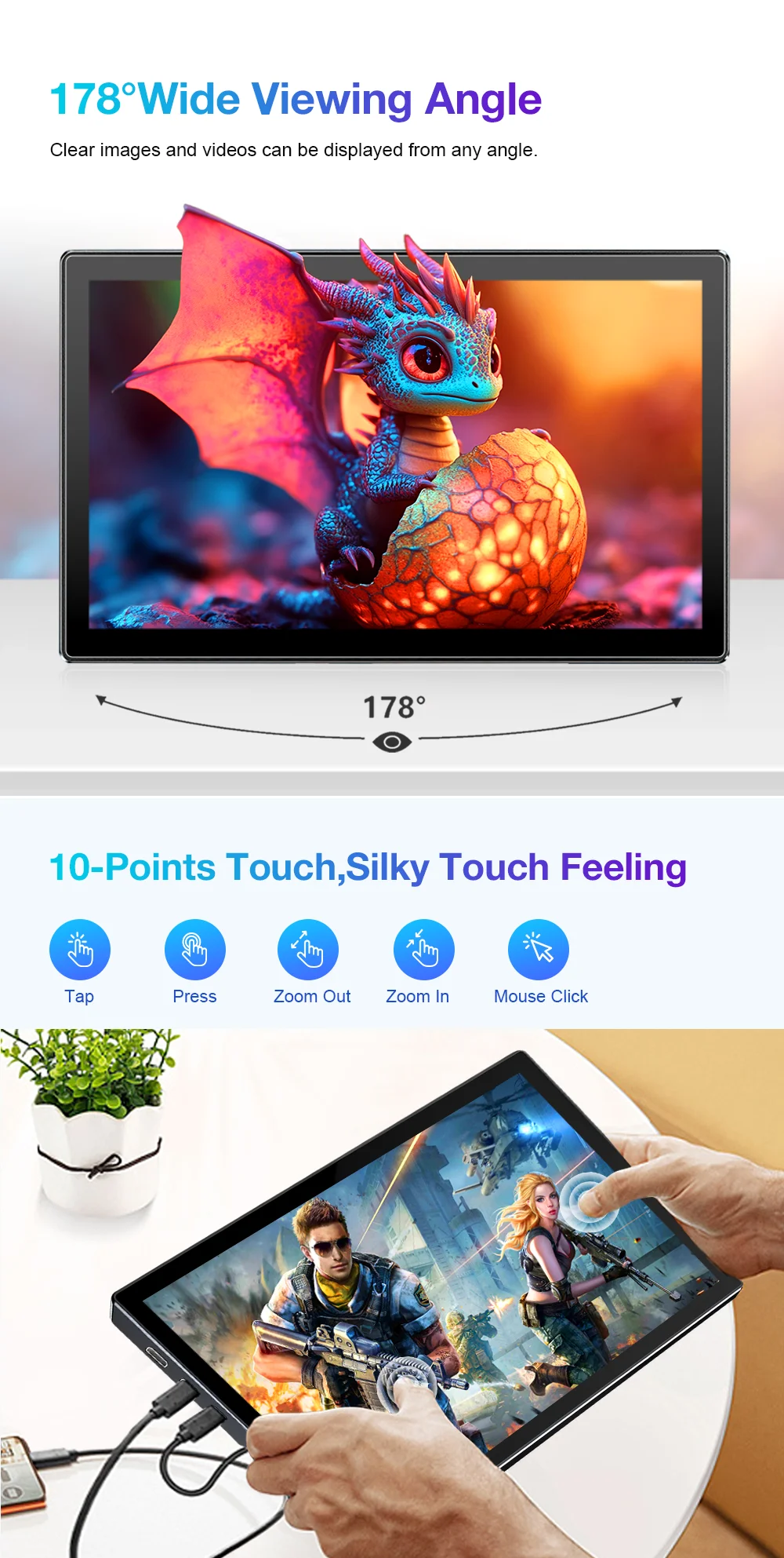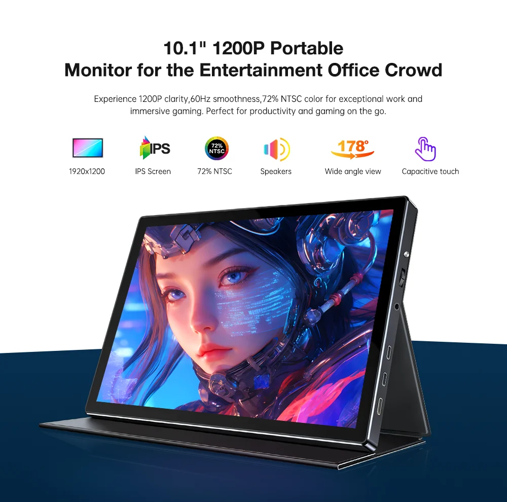 10.1-Inch Portable IPS Touchscreen Monitor with Leather Case and VESA Mount Support