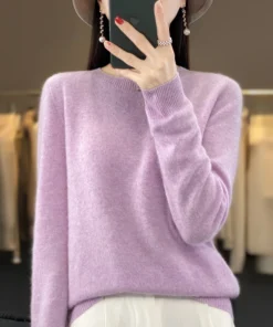 Merino Wool Sweater for Women O-neck Cashmere Knitwear Soft Autumn Winter Pullover Casual Tops