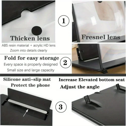 5. Excellent compatibility: whether you are for iPhone or an Android phone, the projector screen of the magnifying glass can be used with your device. 3D visual pleasure can avoid visual fatigue.