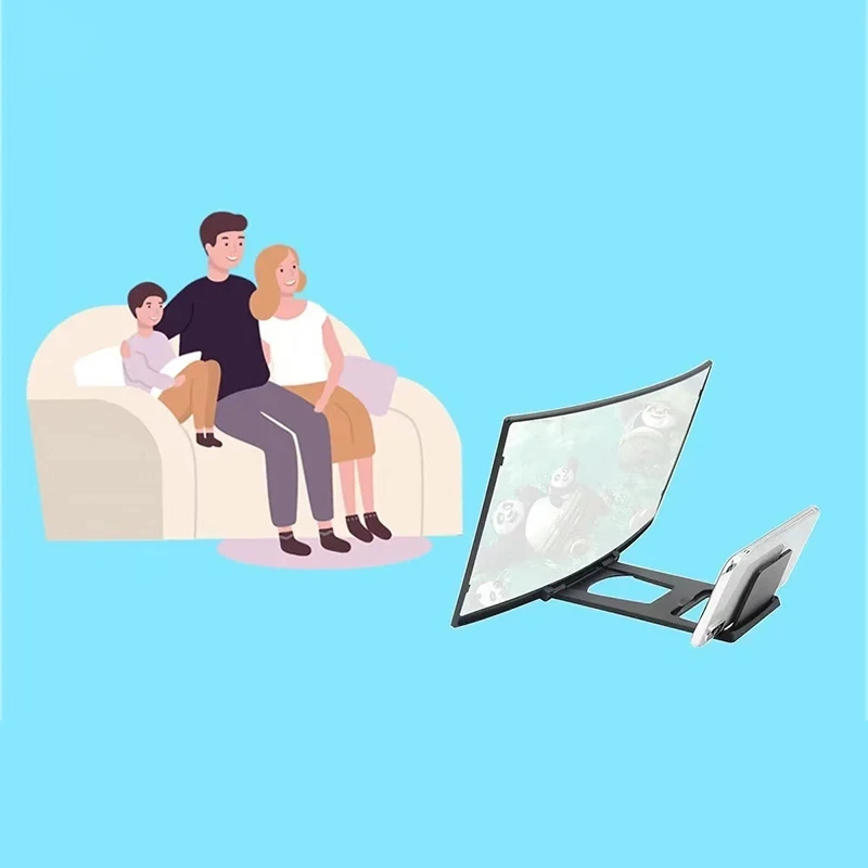 12 Inch Large Screen 3D HD Amplifier Curved Screen Mobile Phone Screen Magnifier Smartphone Video Amplifier Stand Holder