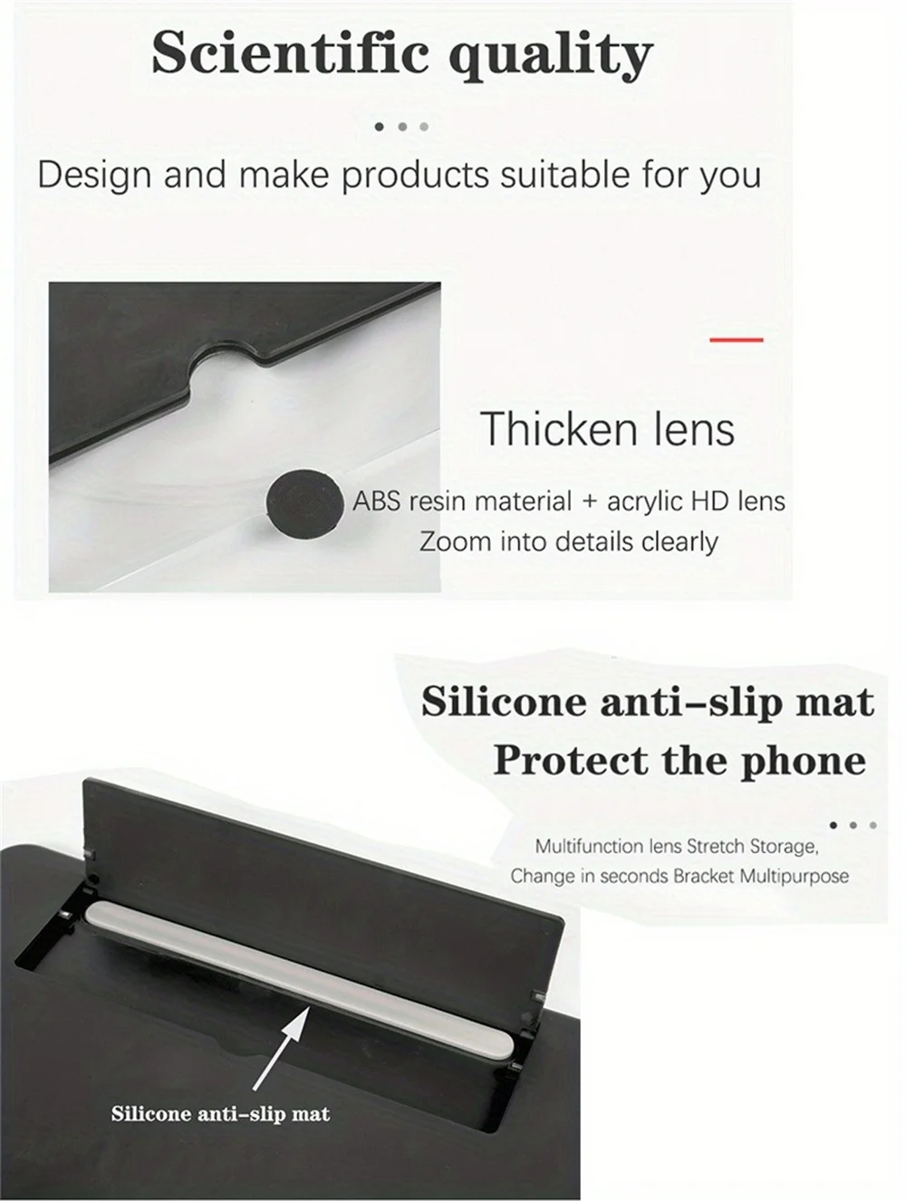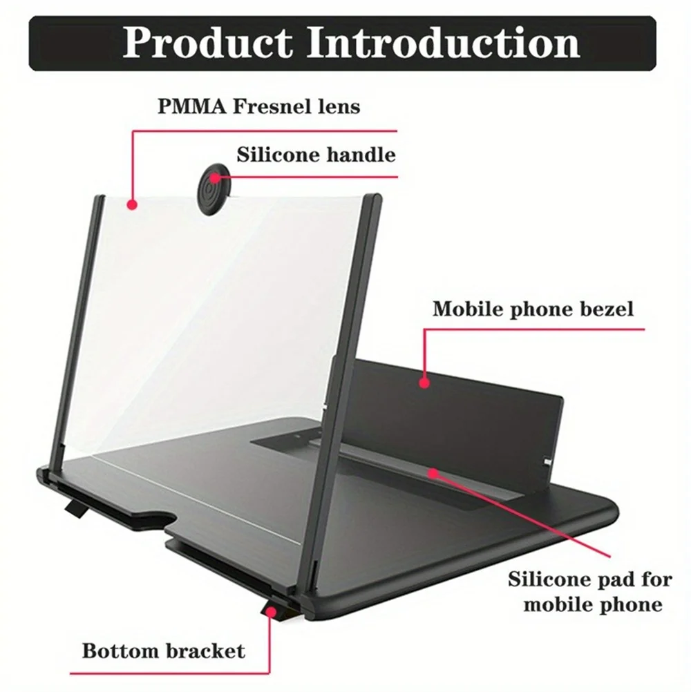 12 Inch Phone Large Screen Amplifier 3D Magnifying Glass Holder HD Portable Mobile Phone Screen Video Magnifier Screen Bracket