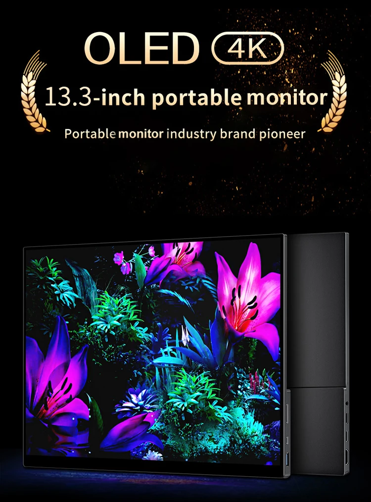 13.3″ 4K OLED Touch Screen Portable Monitor with Type-C and HDMI for Mobile and Gaming