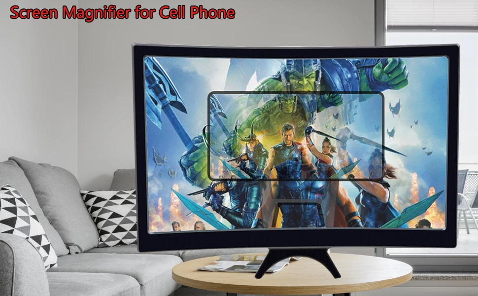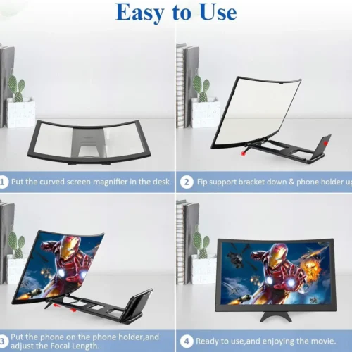 14″ Curved Screen Magnifier 3D HD Projector for Movies Gaming & Video Foldable Phone Stand Universal Smartphone Compatible