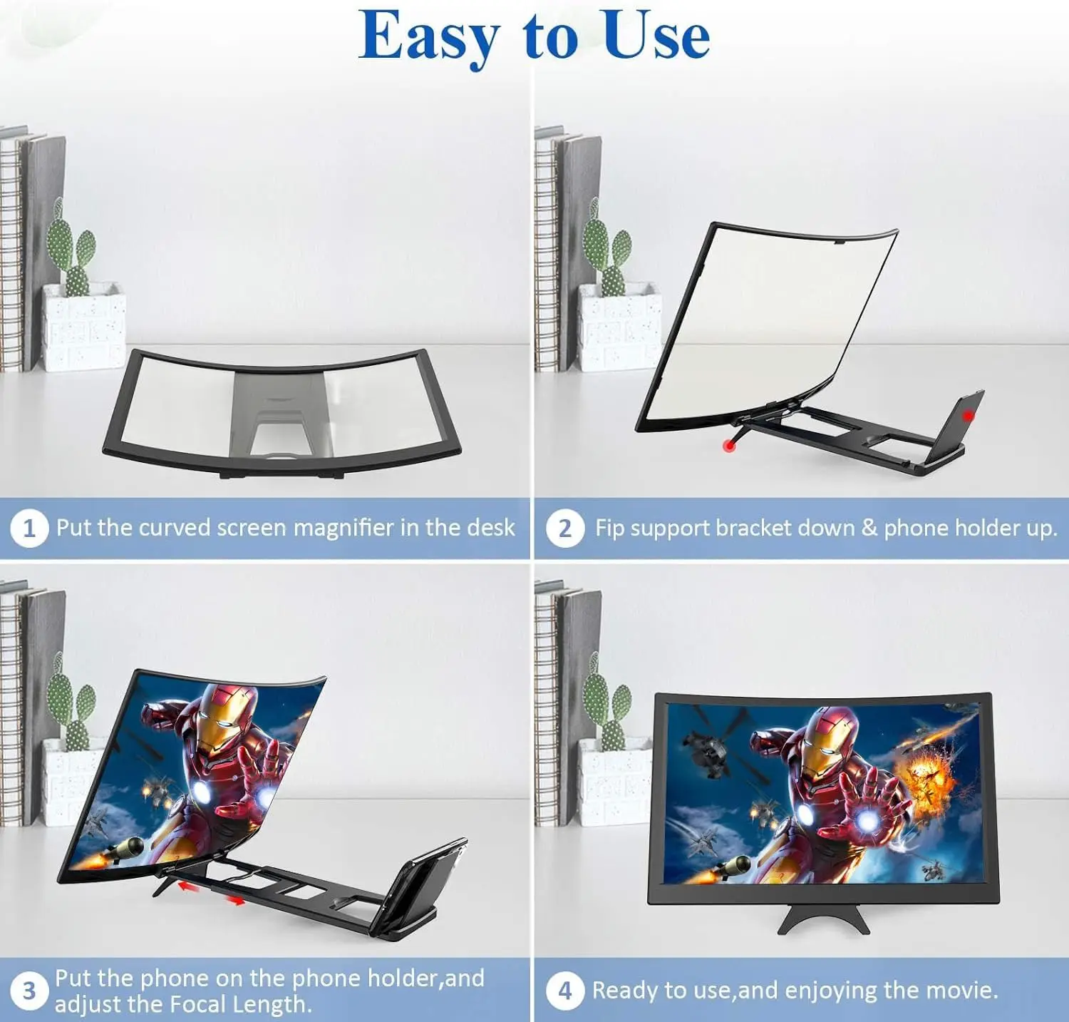 14″ CURVED SCREEN MAGNIFIER: Unique design screen amplifier, which magnifies the mobile screen 2-4 times. It’s suitable to use for watching videos and playing games plus it can become a full page magnifier for reading books or newspapers. It reduces visual fatigue and ease the discomfort caused by watching on a small screen for long duration.