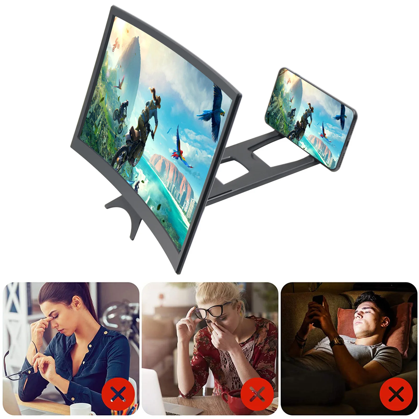 14 Inch Large Screen 3D HD Amplifier Curved Screen Mobile Phone Screen Magnifier For Smartphone Stand Enlarge