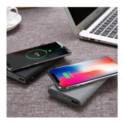 – Wireless power bank with a capacity of 10000mAh and two-way fast charging.