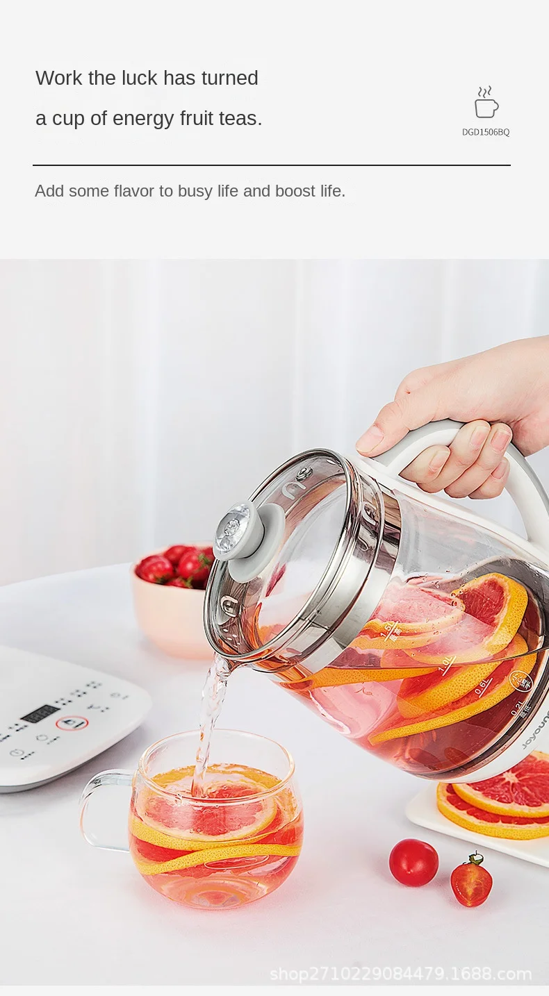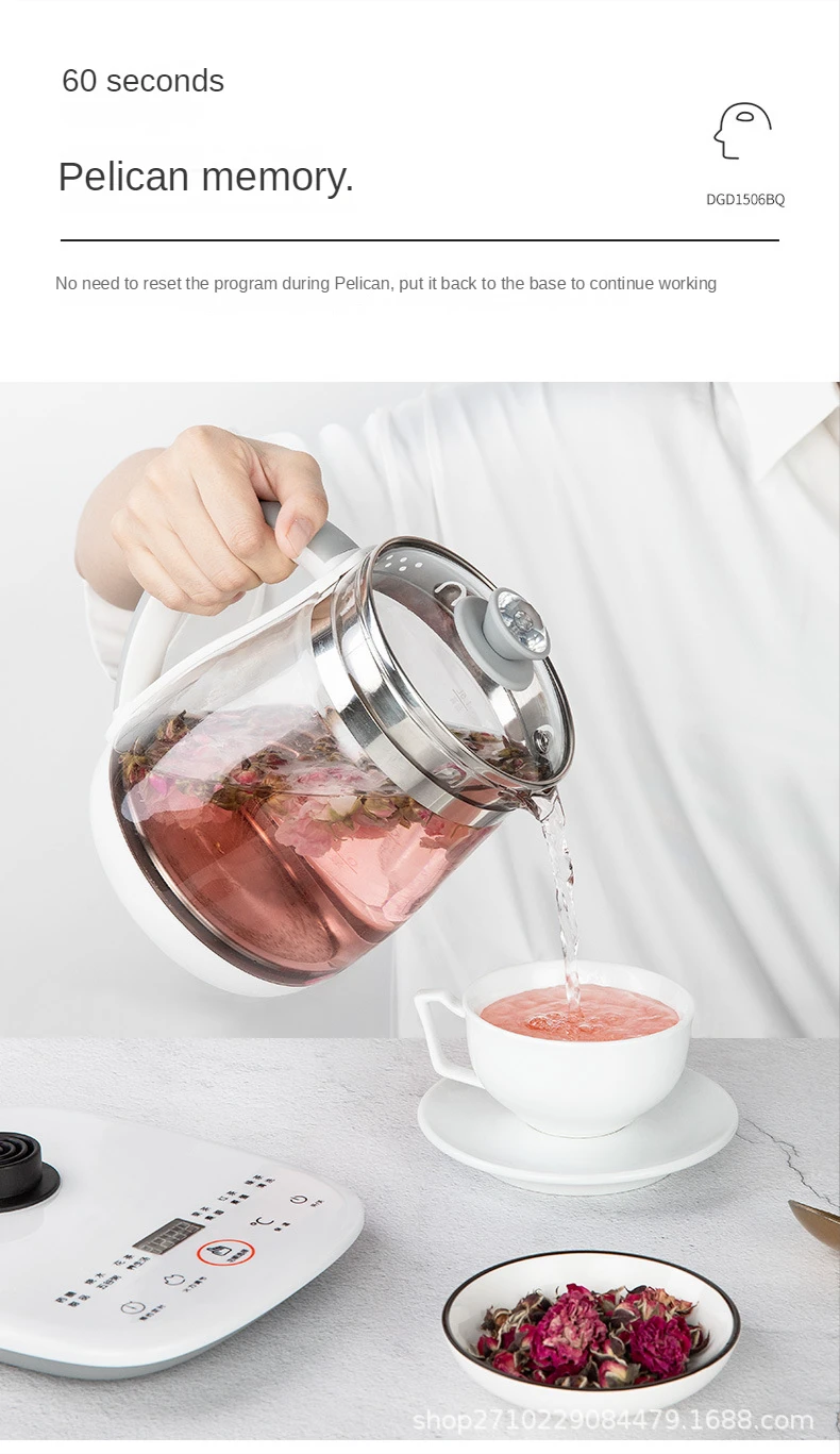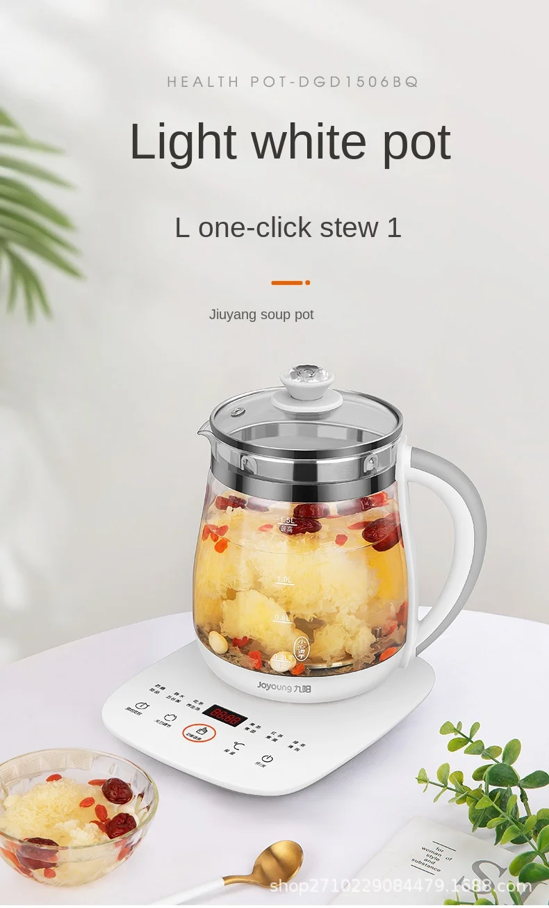 2025 Jiuyang health pot multi-functional flower teapot glass stew tea pot 1.5L Portable Mini Multi Cooker Tea Dessert Cooker