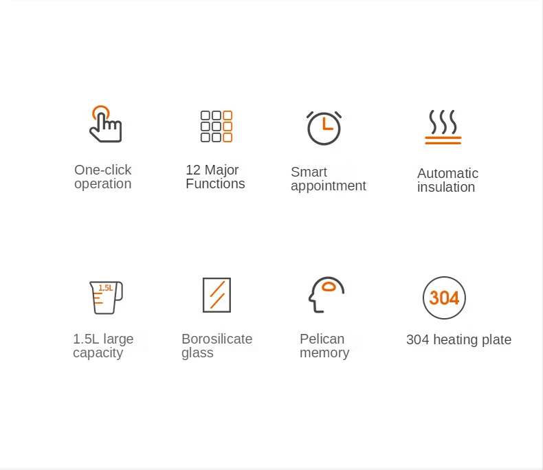 | Function | Safety Auto-Off Function, Overheat Protection, Anti-dry Protection, Water level indication, Temperature control, Temperature support, Digital Display, Sound signal, Shutdown when removed |