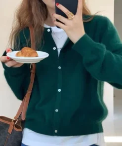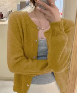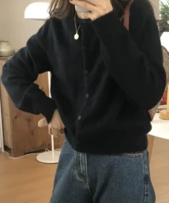 Y2K Knitted Cardigan with O-Neck Design for Women’s Autumn Winter Fashion