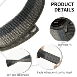 – QuickFit Nylon Loop Strap available in 22mm and 26mm widths, compatible with various Garmin watch models.