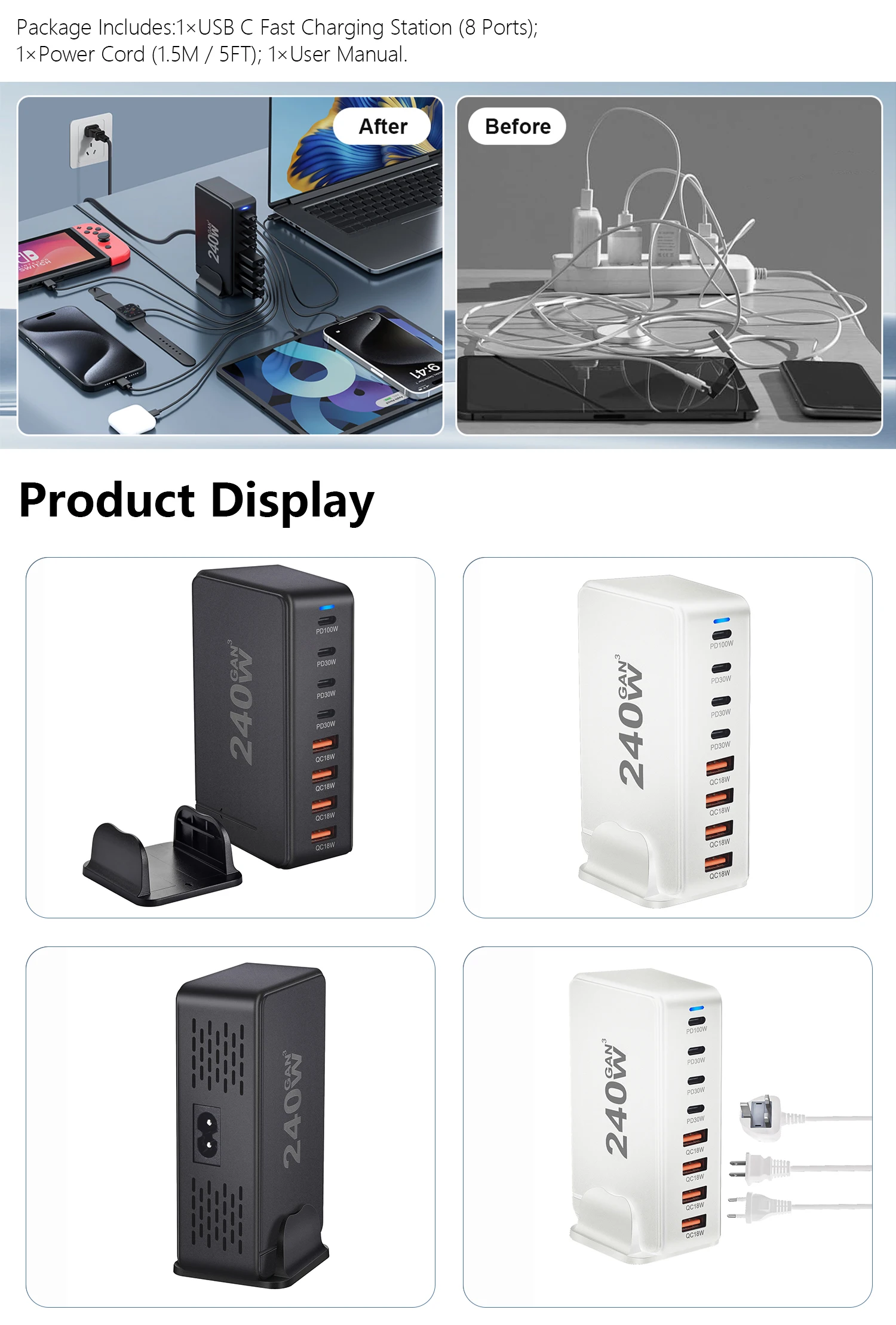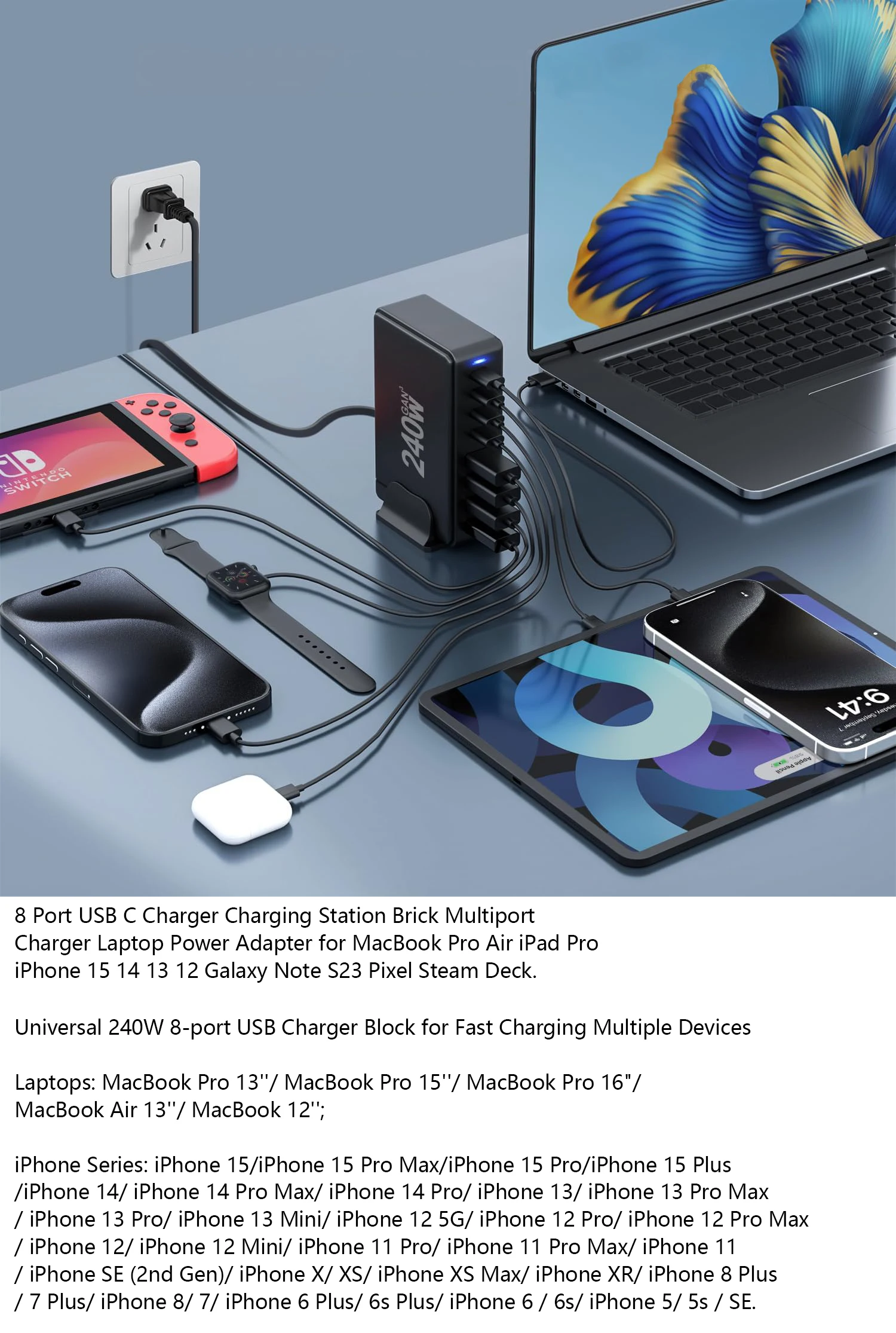 Be the first to review “240W fast charging block, 6-port charging station suitable for iPhone/iPad/MacBook, 4C2A PD GaN charger box, USB tower hub, 5-fo”