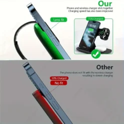 – 3 in 1 wireless charging station for multiple devices.