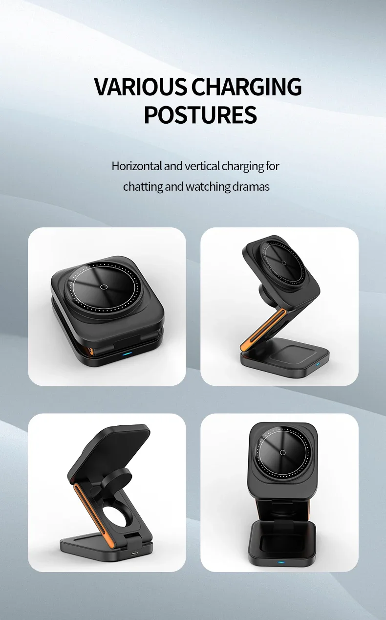 3-in-1 Foldable Magnetic Wireless Charging Station – Fast Charger for iPhone, Apple Watch, and AirPods