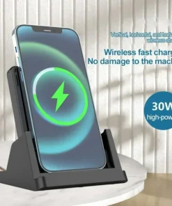 30W Wireless Charger Stand with Quick Charging and Removable Vertical Holder for iPhone and Samsung