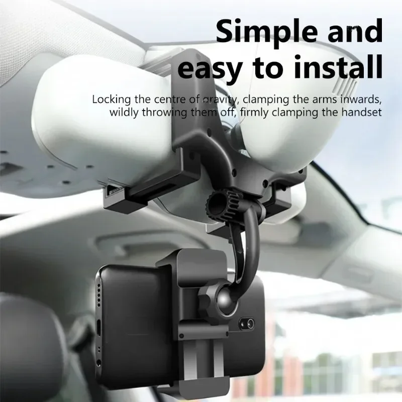 360 Car Phone Holder Rearview Mirror Mount Bracket Navigation GPS Mobile Stand Clip Foldable Adjustable Car Cell Phone Support