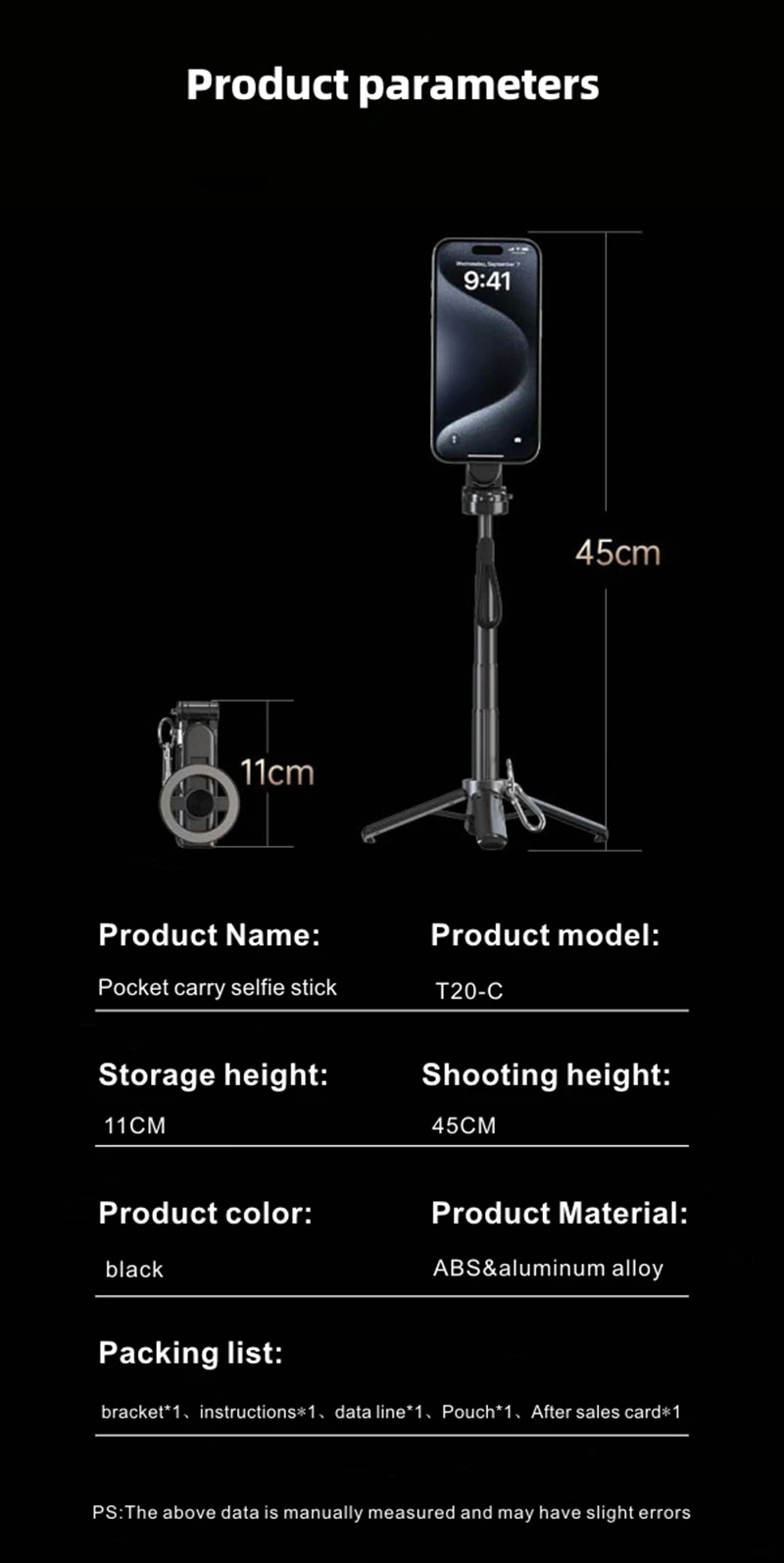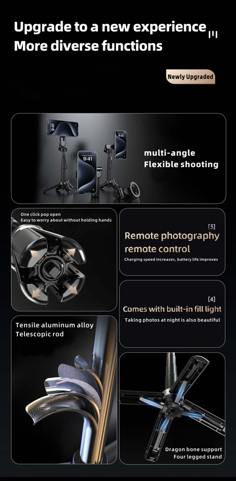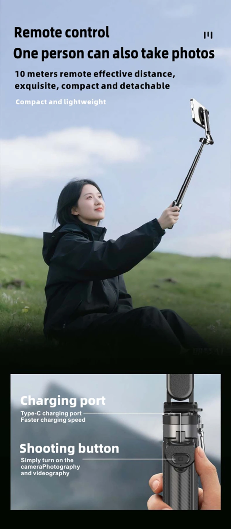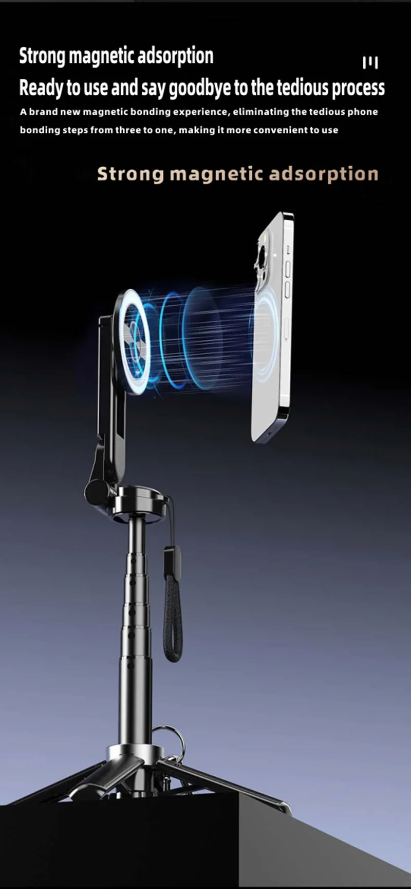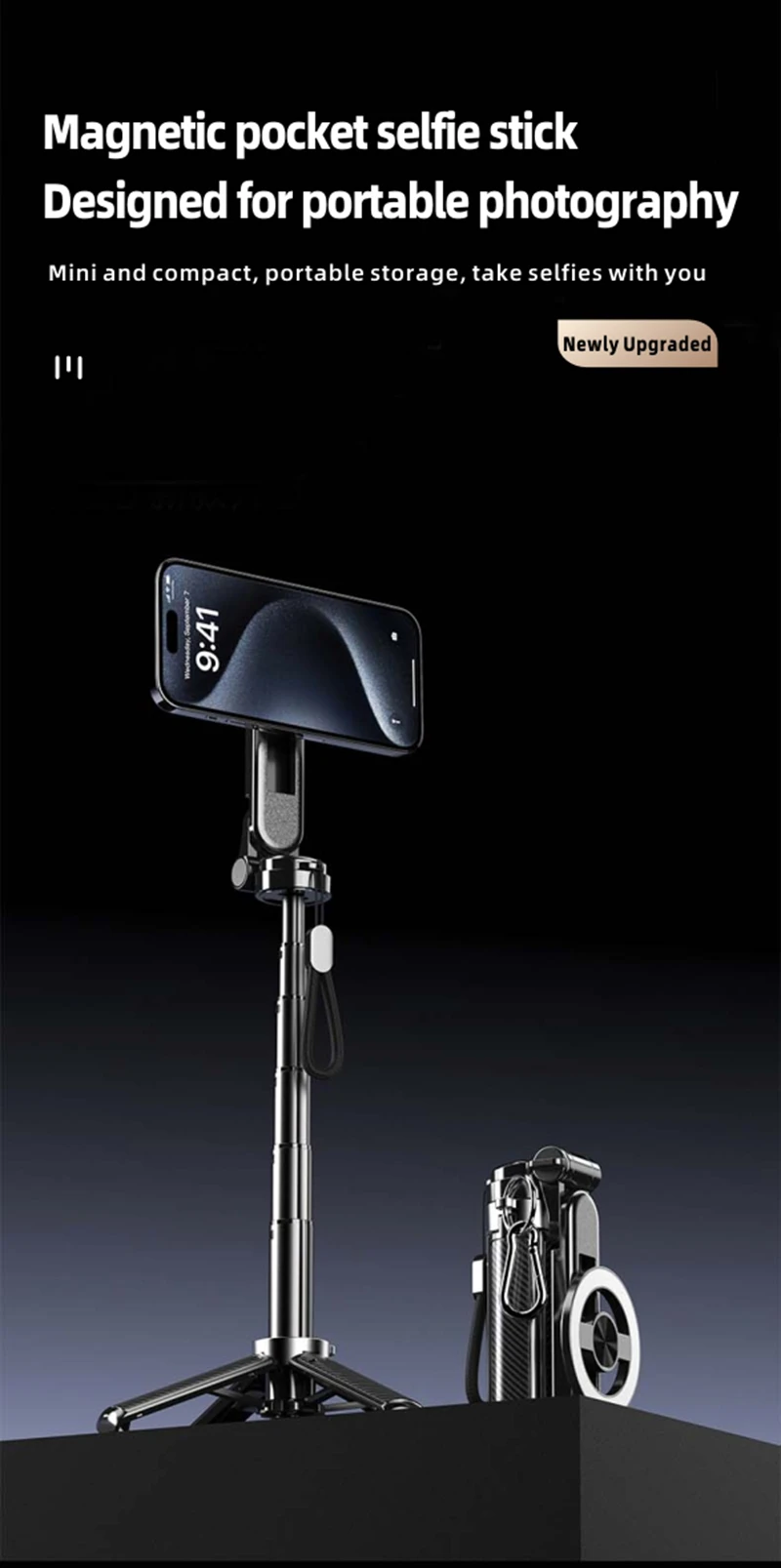 4-in-1 Multifunctional Magnetic mini Selfie Stick Wireless Bluetooth Control with 360° Rotation for Selfies Video Record