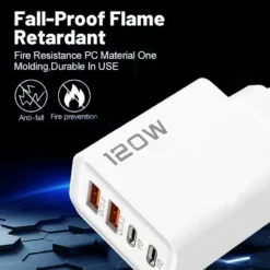 – 120W dual PD and dual USB charger designed for fast charging of multiple devices.