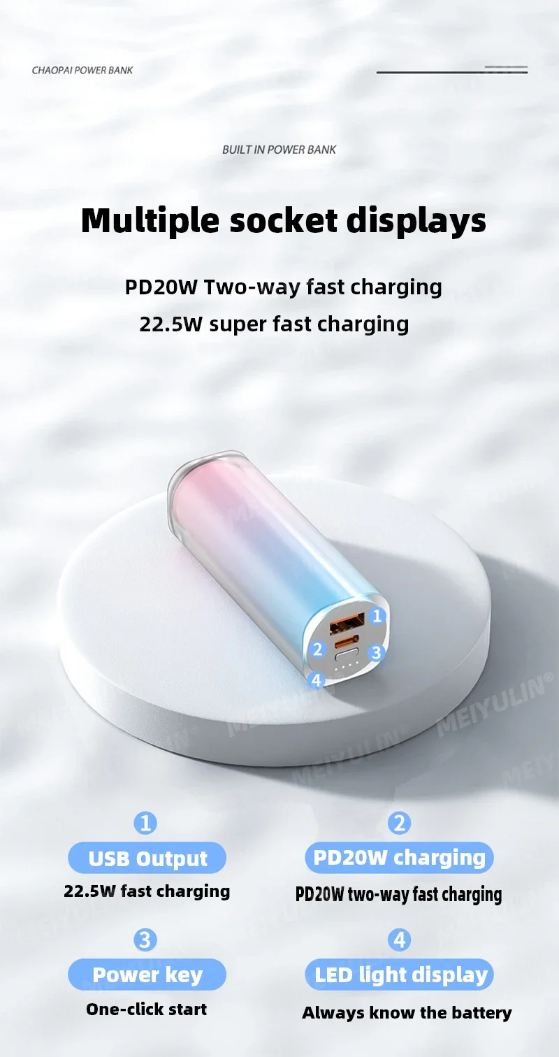 5000mAh Portable Power Bank with PD 20W Fast Charging for iPhone, Samsung, Xiaomi