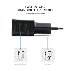 – Dual USB EU plug charger with a 5V/2A output for various devices.