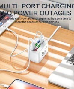 – Multi port 6 in 1 USB Travel Charger designed for versatile charging needs.