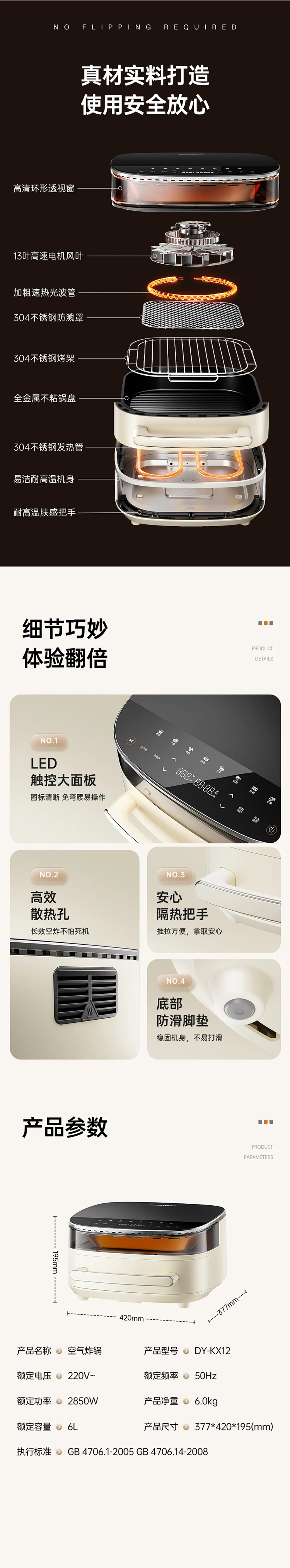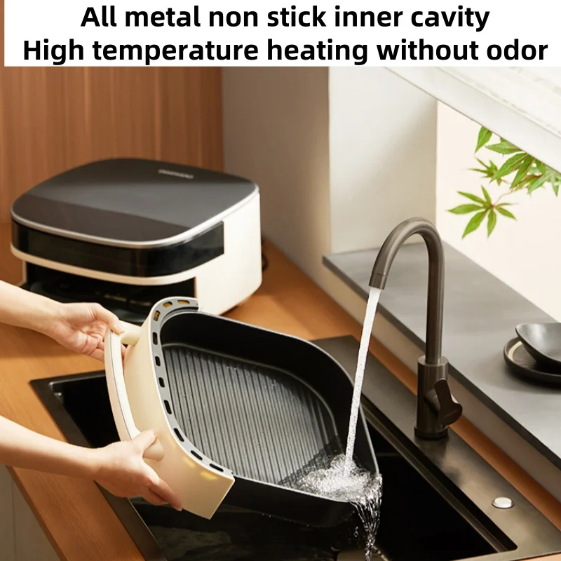 220V 6L Large Capacity Visible Multifunctional Air Fryer with Metal Cavity Non-stick Coating, Home Electric Oven Combo Machine