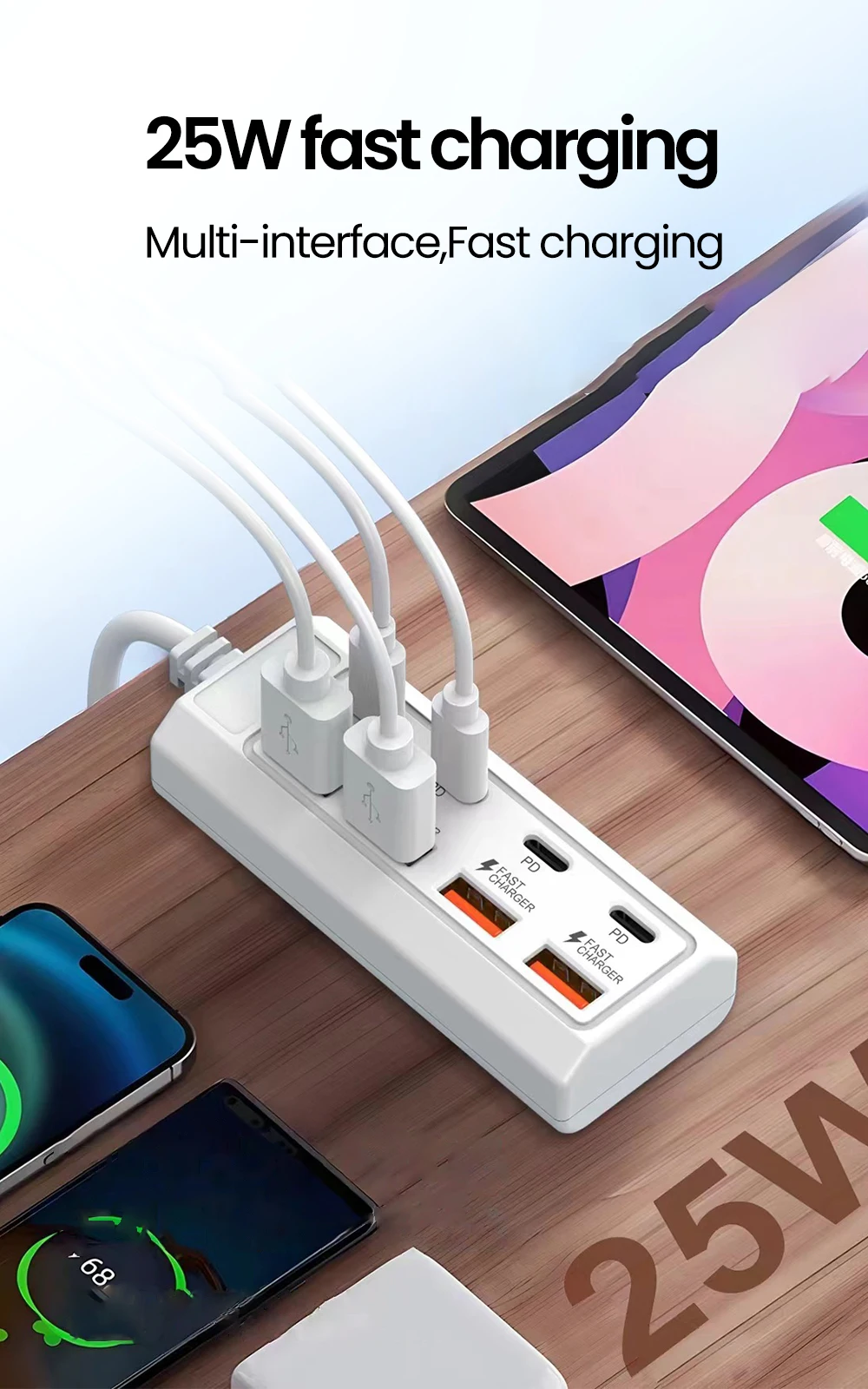 8 in 1 USB Charging Station 25W PD Type C Power Strip Multi Port Desktop HUB Phone Adapter For iPhone 16 Samsung Xiaomi Huawei