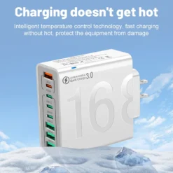 – Multi-port fast charging charger suitable for various plug types.