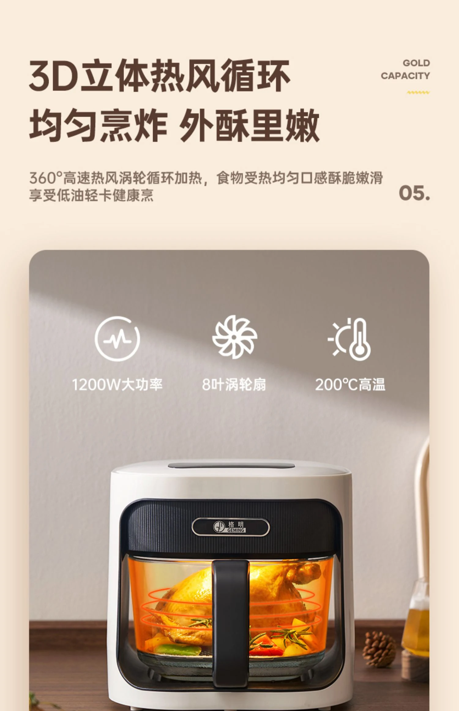 Air Fryer with Visual Glass Liner – Multi-Function Household Appliance