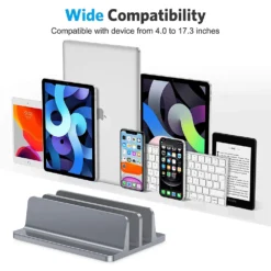– Double Vertical Laptop Stand compatible with various laptops and tablets.