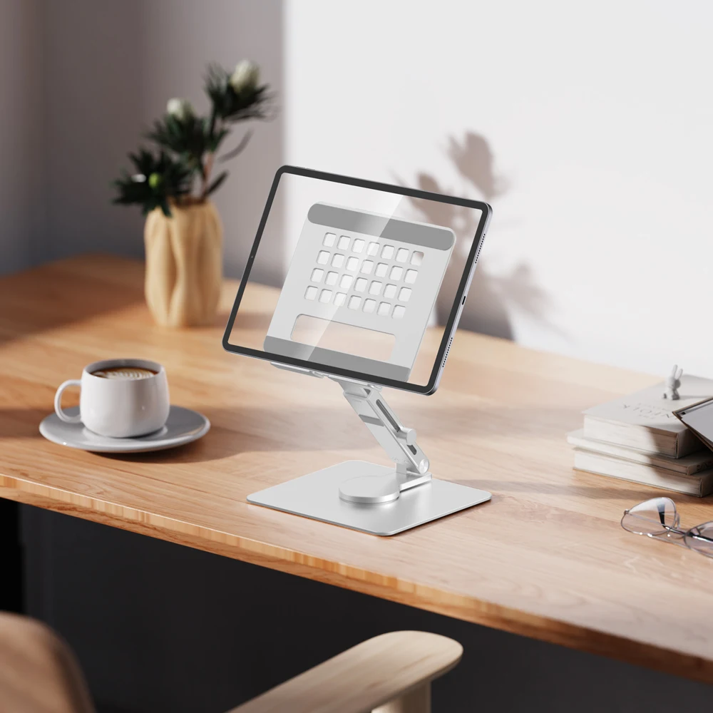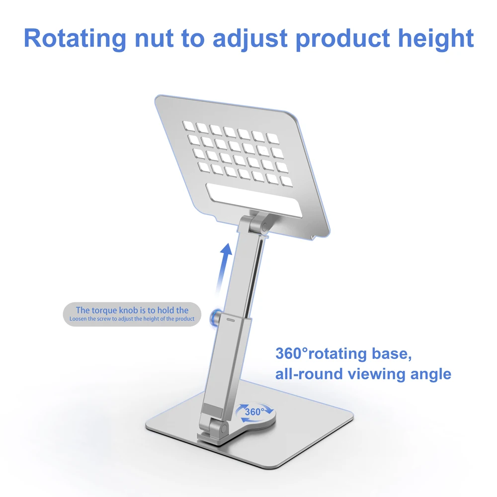 Aluminum Tablet Stand with Folding and Rotating Features for Home and Office Use