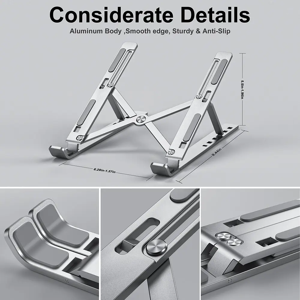 Aluminum Portable Laptop Stand – Foldable Computer Holder for MacBook and PC