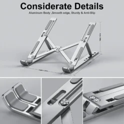 – This portable aluminum laptop stand offers ergonomic support for various laptop models.