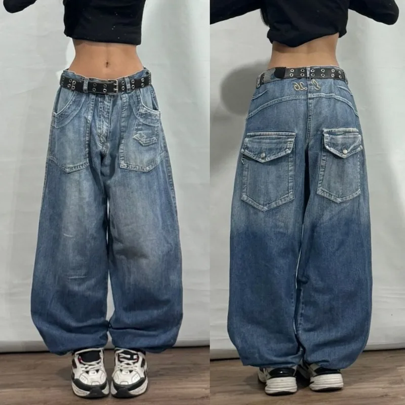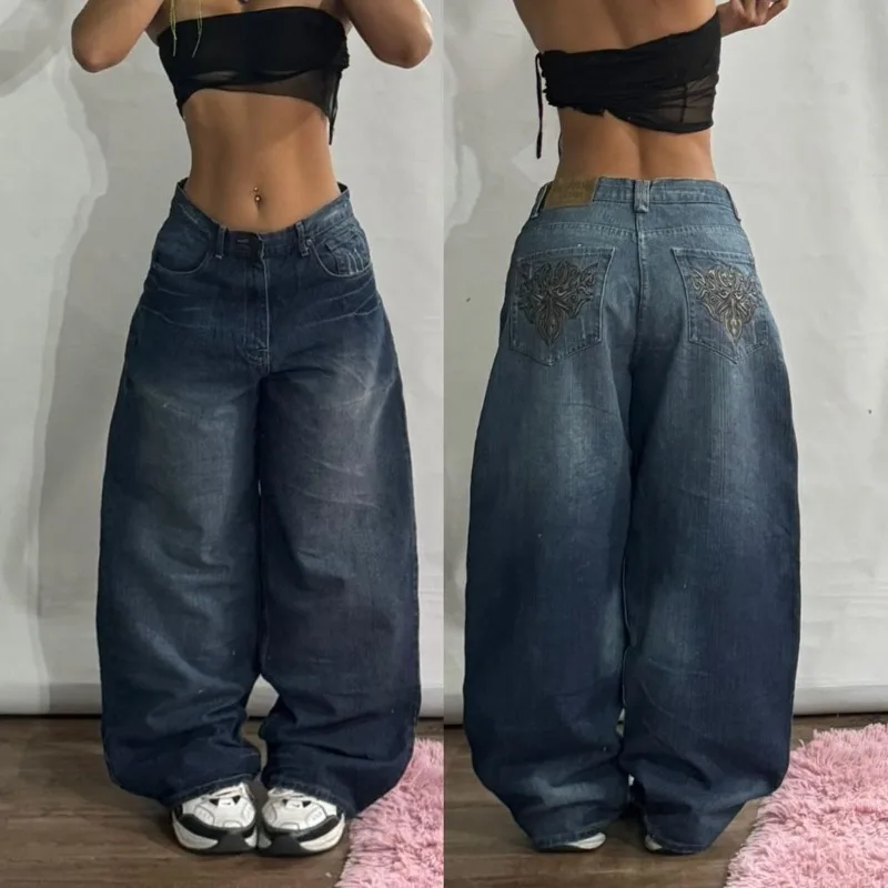 Be the first to review “American Geometric Pattern Baggy Jeans for Women – Y2K Vintage Wide-Leg Pants”