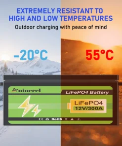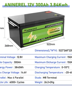 – 12V 300Ah Lithium Battery with a capacity of 3.84KWh.