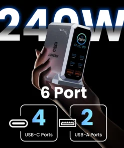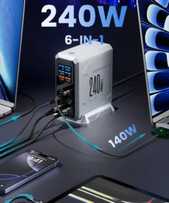 – 6-IN-1 GaN Charger with multiple USB ports.