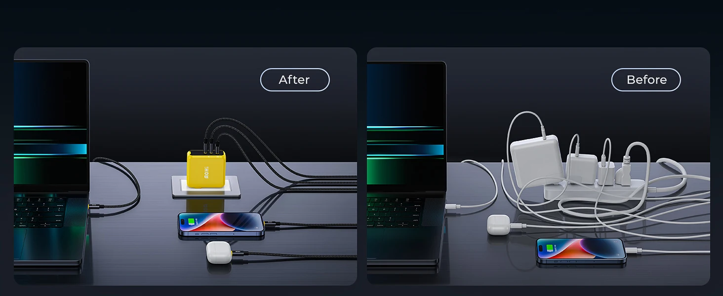 With two PD3.1 USB-C ports and one USB-A port, this charger can power two 14-inch laptops and a phone simultaneously, making it fast enough for users with multiple devices. It’s a charger that can handle all your devices. Additionally, if you want to keep your desktop tidy, the AOHI 140W Magcube multiport charger is a great option