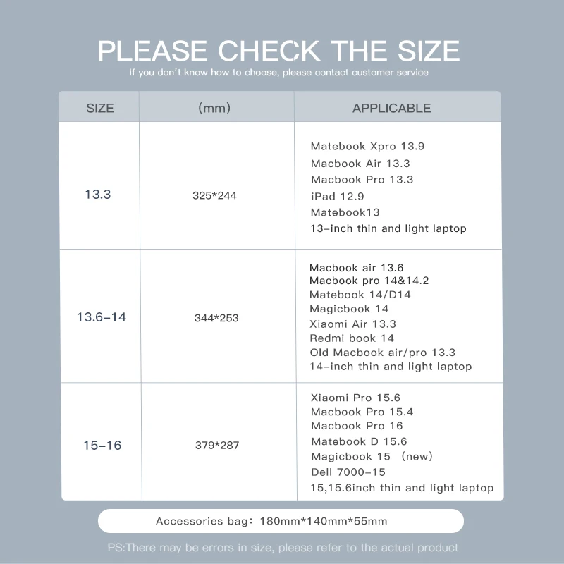 | Size | 13.3inch, 13.6-14inch, 15-16inch |