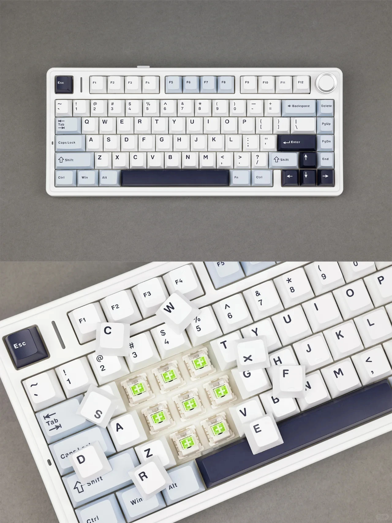 F75 is equipped with hot-swappable PCB to ensure free replacement or change of switches. It is compatible with most 3-pin and 5-pin mechanical switches. Pre-installed the pre-lubed custom switches providing unrivaled tactile responsiveness with up to 60 million keystroke lifespan.