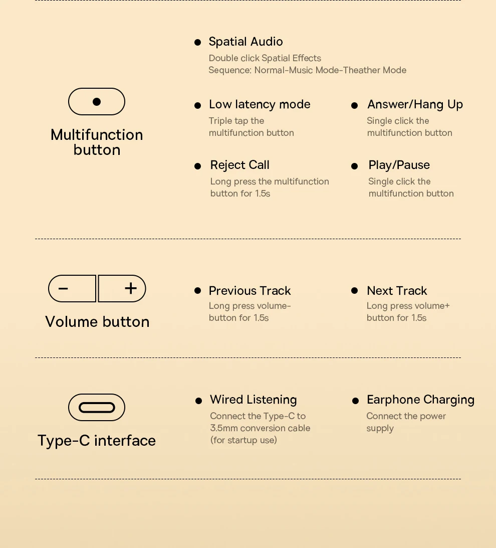 6.Type-C to 3.5mm headphone jack for wired connection(when the headphone is powered on)