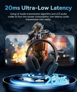 – 20ms ultra-low latency using LE Audio transmission algorithm and LC3 audio codes.