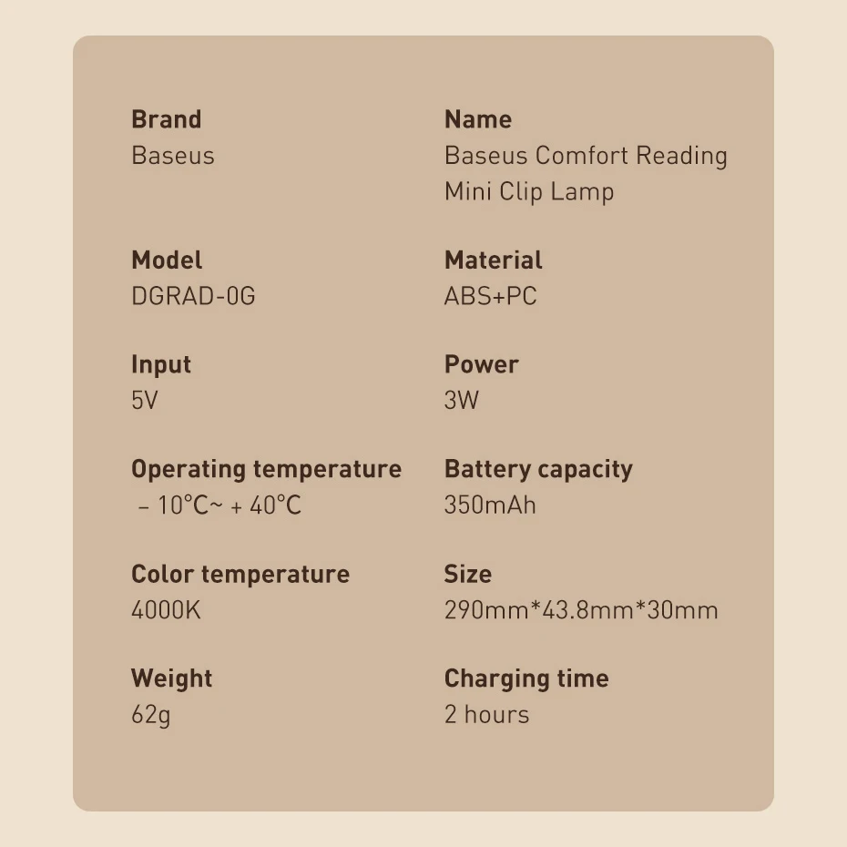 Name: Baseus Comfort Reading Mini Clip Lamp
