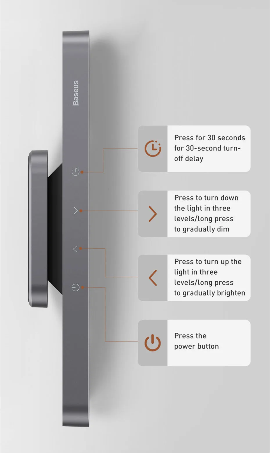 You don’t have to go to bed in the dark due to the 30-second turn-off delay, more convenient and safer.