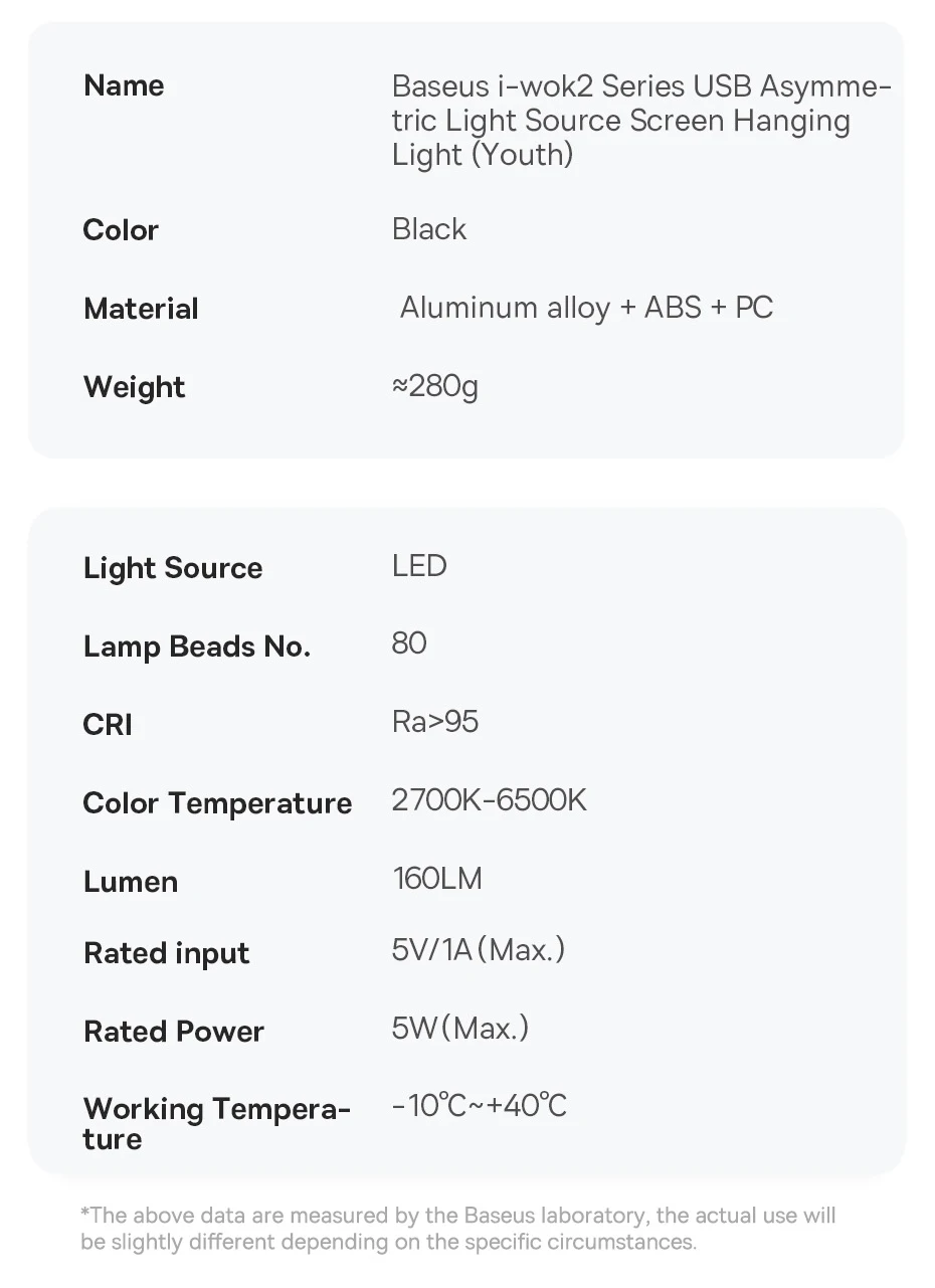 Name: Baseus i-wok2 Series USB Asymmetric Light Source Screen Hanging Light (Youth)