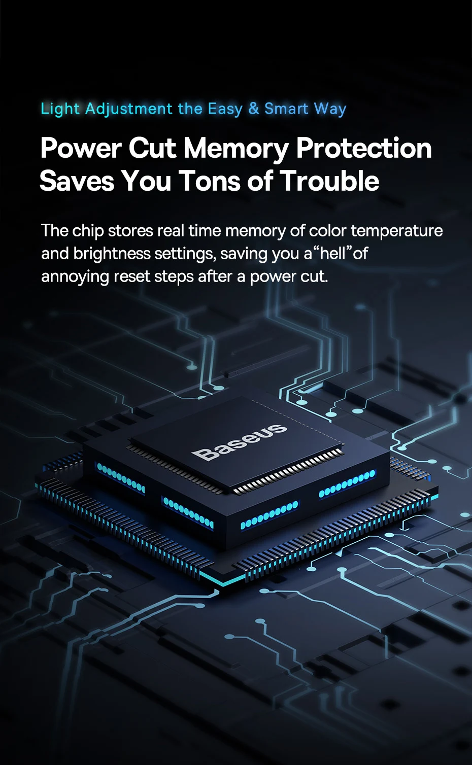 The chip stores real time memory of color temperature and brightness settings, saving you a ”hell” of annoying reset steps after a power cut.