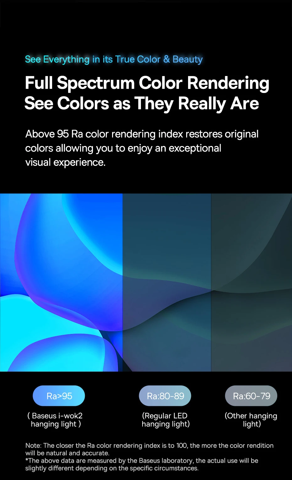 Ra Color Rendering Index: The closer the Ra color rendering index is to 100, the more the color rendition will be natural and accurate.