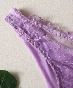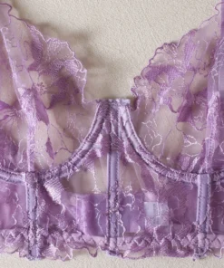 Underwire Camisole Set with Embroidered Mesh and Low-Cut Triangle Panties for Intimate Wear