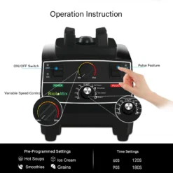 – Variable speed and timer control with four pre-programmed settings for versatile blending tasks.