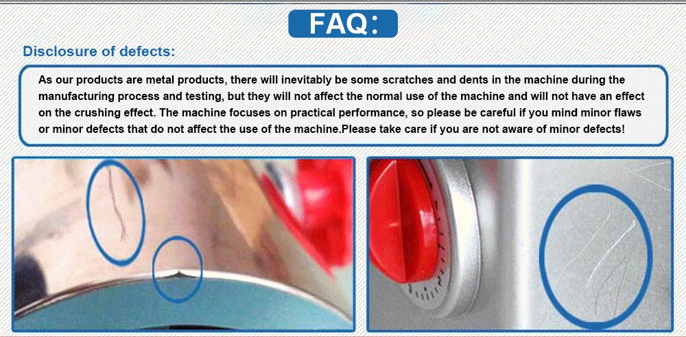 4, clean sanitation, work laid the dust, using food grade silicone seals, crushing material without loss, crushing chamber adopts food grade stainless steel drawing process, wall using high gloss polishing technology, smooth and easy to clean; crushing different drugs never string color and odor; grinding groove and blades are made of stainless steel, meet avoid iron in many Chinese herbs requirements.