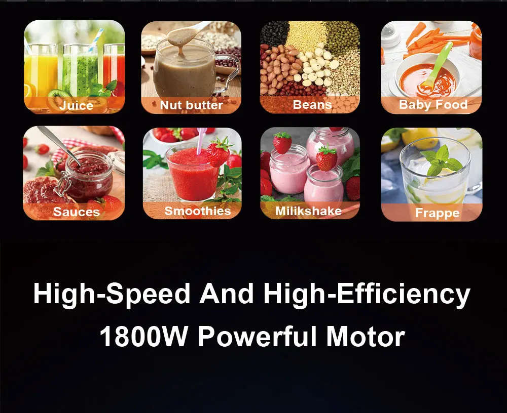 BioloMix Mini Pro Blender 1800W, BPA-Free, 1.8L & 0.6L Dual Jars